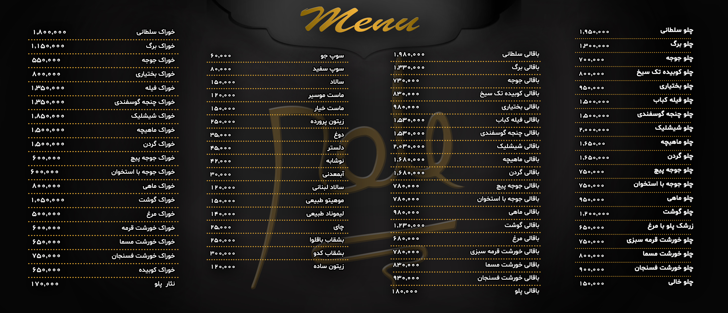 منوی رستوران